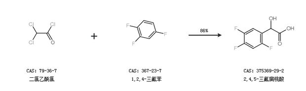 1.通过二氯乙酰氯和1,2,4-三氟苯合成2,4,5-三氟扁桃酸,收率约86%;
