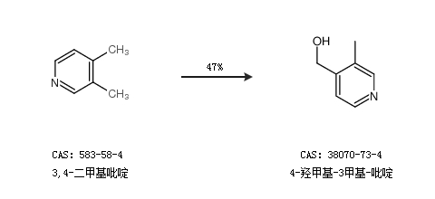 2.通过3,4-二甲基吡啶合成4-羟甲基-3甲基-吡啶,收率约47%;