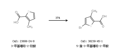 2.通过3-甲基噻吩-2-羧酸合成5-溴-3-甲基噻吩-2-甲酸,收率约37%;