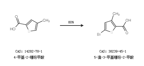 1.通过4-甲基-2-噻吩甲酸合成5-溴-3-甲基噻吩-2-甲酸,收率约80%;