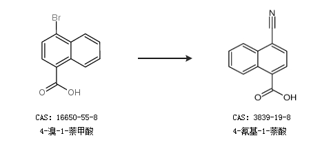 2.通过4-溴-1-萘甲酸合成4-氰基-1-萘酸
