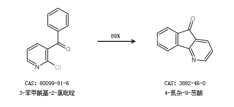 1.通过3-苯甲酰基-2-氯吡啶合成4-氮杂-9-芴酮,收率约89%;