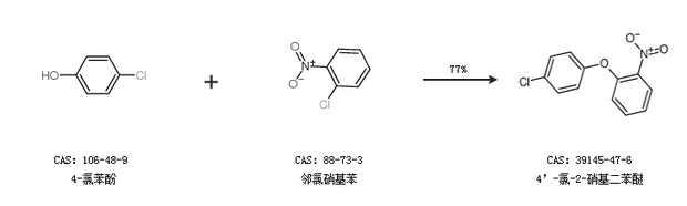 1.通过4-氯苯酚和邻氯硝基苯合成4’-氯-2-硝基二苯醚,收率约77%;