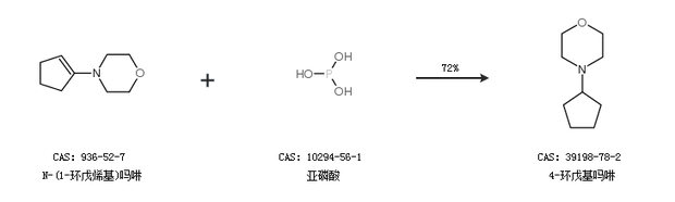 2.通过N-(1-环戊烯基)吗啉和亚磷酸合成4-环戊基吗啉,收率约72%;