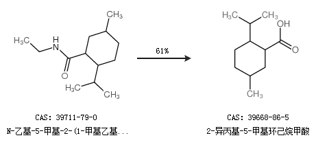 1.通过N-乙基-5-甲基-2-(1-甲基乙基)环己甲酰胺合成2-异丙基-5-甲基环己烷甲酸,收率约61%;
