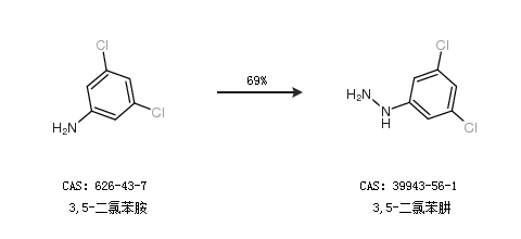 1.通过3,5-二氯苯胺合成3,5-二氯苯肼,收率约69%;