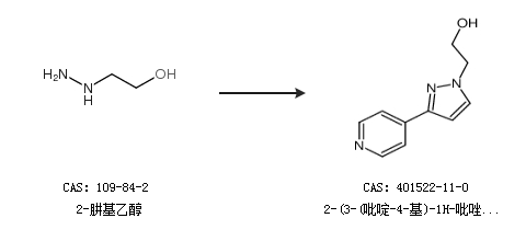 1.通过2-肼基乙醇合成2-(3-(吡啶-4-基)-1H-吡唑-1-基)乙醇