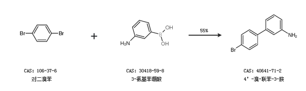 1.通过对二溴苯和3-氨基苯硼酸合成4’-溴-联苯-3-胺,收率约55%;