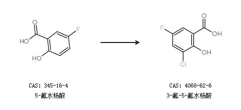 1.通过5-氟水杨酸合成3-氟-5-氟水杨酸