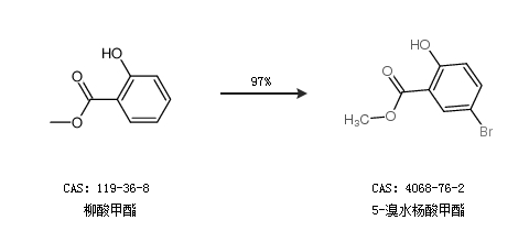 2.通过柳酸甲酯合成5-溴水杨酸甲酯,收率约97%;