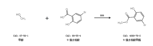 1.通过甲醇和5-溴水杨酸合成5-溴水杨酸甲酯,收率约99%;