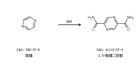 1.通过吡嗪合成2,5-吡嗪二羧胺,收率约98%;