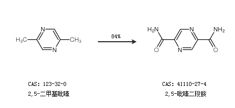 2.通过2,5-二甲基吡嗪合成2,5-吡嗪二羧胺,收率约84%;