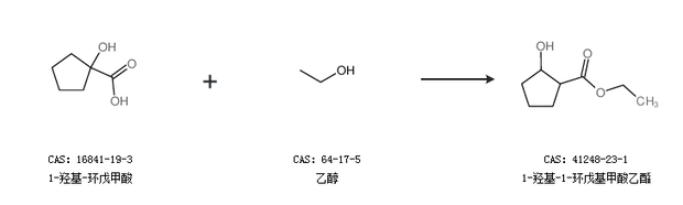 1.通过1-羟基-环戊甲酸和乙醇合成1-羟基-1-环戊基甲酸乙酯