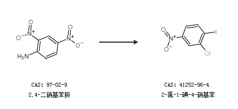 1.通过2,4-二硝基苯胺合成2-氯-1-碘-4-硝基苯