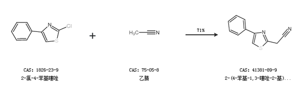 2.通过2-氯-4-苯基噻唑和乙腈合成2-(4-苯基-1,3-噻唑-2-基)乙腈,收率约71%;