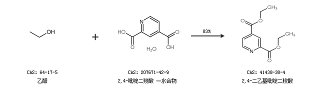 2.通过乙醇和2,4-吡啶二羧酸 一水合物合成2,4-二乙基吡啶二羧酸,收率约83%;