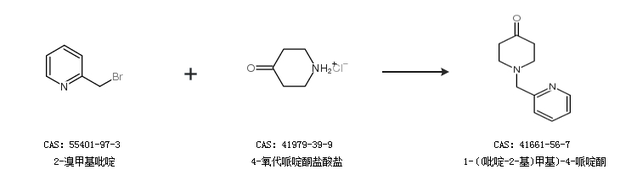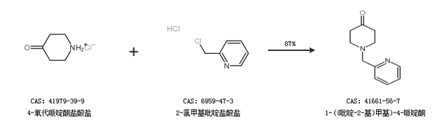 1.通过4-氧代哌啶酮盐酸盐和2-氯甲基吡啶盐酸盐合成1-((吡啶-2-基)甲基)-4-哌啶酮,收率约87%;