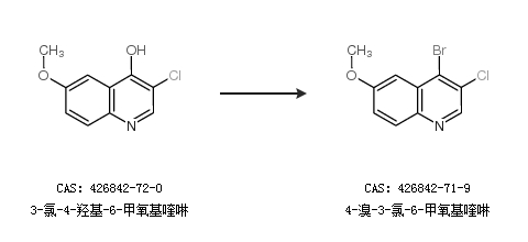 1.通过3-氯-4-羟基-6-甲氧基喹啉合成4-溴-3-氯-6-甲氧基喹啉