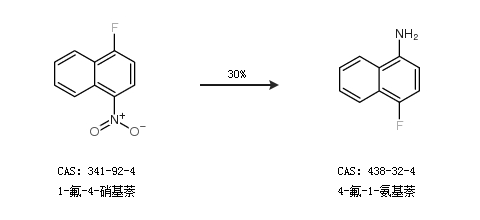 1.通过1-氟-4-硝基萘合成4-氟-1-氨基萘,收率约30%;