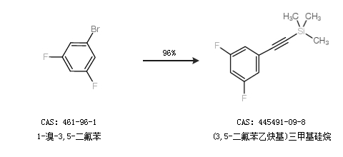 1.通过1-溴-3,5-二氟苯合成(3,5-二氟苯乙炔基)三甲基硅烷,收率约96%;