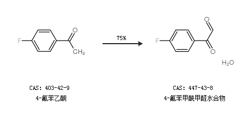 1.通过4-氟苯乙酮合成4-氟苯甲酰甲醛水合物,收率约75%;