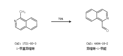 1.通过1-甲基异喹啉合成异喹啉-1-甲醛,收率约79%;