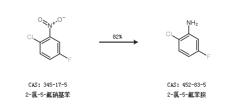 1.通过2-氯-5-氟硝基苯合成2-氯-5-氟苯胺,收率约82%;