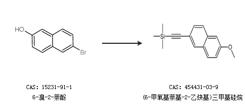 2.通过6-溴-2-萘酚合成(6-甲氧基萘基-2-乙炔基)三甲基硅烷