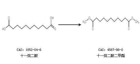 1.通过甲醇和十一烷二酸合成十一烷二酸二甲酯,收率约99%;