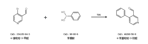 1.通过4-溴吡啶-3-甲醛和苯硼酸合成4-苯基吡啶-3-羧醛,收率约79%;