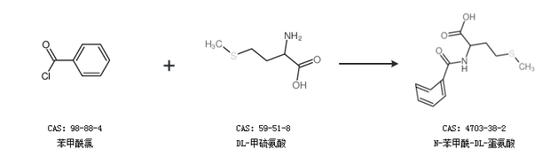 1.通过苯甲酰氯和DL-甲硫氨酸合成N-苯甲酰-DL-蛋氨酸
