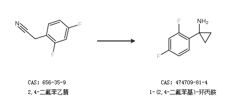 1.通过2,4-二氟苯乙腈合成1-(2,4-二氟苯基)-环丙胺