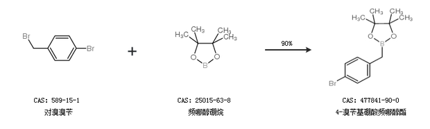 1.通过对溴溴苄和频哪醇硼烷合成4-溴苄基硼酸频哪醇酯,收率约90%;