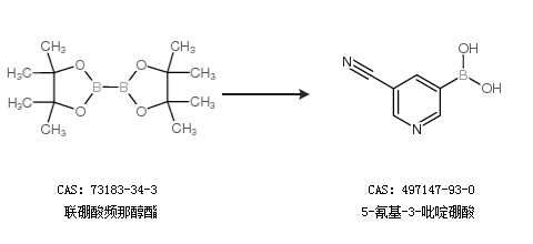 1.通过联硼酸频那醇酯合成5-氰基-3-吡啶硼酸