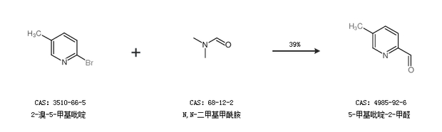 1.通过2-溴-5-甲基吡啶和N,N-二甲基甲酰胺合成5-甲基吡啶-2-甲醛,收率约39%;