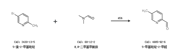 2.通过5-溴-2-甲基吡啶和N,N-二甲基甲酰胺合成5-甲基吡啶-2-甲醛,收率约45%;