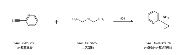 2.通过2-氰基吡啶和二乙基锌合成1-(吡啶-2-基)环丙胺,收率约80%;