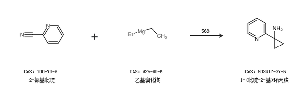 1.通过2-氰基吡啶和乙基溴化镁合成1-(吡啶-2-基)环丙胺,收率约56%;