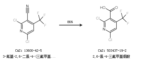 1.通过3-氰基-2,6-二氯-4-(三氟甲基)吡啶合成2,6-氯-4-三氟甲基烟酸,收率约86%;