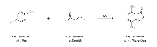 2.通过对二甲苯和3-氯丙酰氯合成4,7-二甲基-1-茚酮,收率约76%;