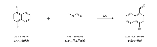 1.通过1,4-二溴代萘和N,N-二甲基甲酰胺合成4-溴-1-萘醛,收率约60%;