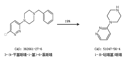 1.通过3-(4-苄基哌嗪-1-基)-6-氯哌嗪合成1-(6-哒嗪基)哌嗪,收率约19%;