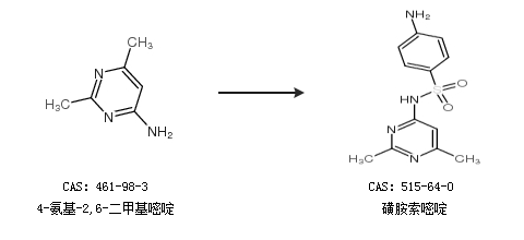 1.通过4-氨基-2,6-二甲基嘧啶合成磺胺索嘧啶