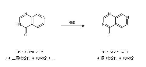 1.通过3,4-二氢吡啶[3,4-D]嘧啶-4-酮合成4-氯-吡啶[3,4-D]嘧啶,收率约96%;