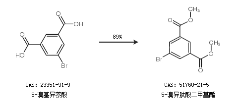 2.通过5-溴基异萘酸合成5-溴异肽酸二甲基酯,收率约89%;