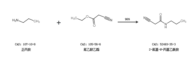 1.通过正丙胺和氰乙酸乙酯合成2-氰基-N-丙基乙酰胺,收率约96%;