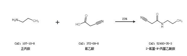 2.通过正丙胺和氰乙酸合成2-氰基-N-丙基乙酰胺,收率约23%;