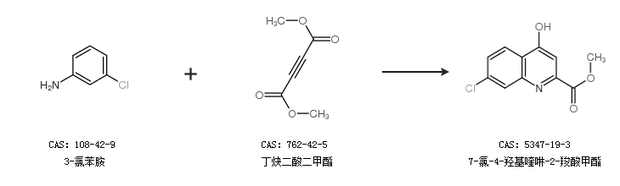 1.通过3-氯苯胺和丁炔二酸二甲酯合成7-氯-4-羟基喹啉-2-羧酸甲酯