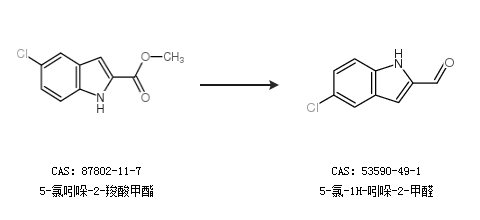 2.通过5-氯吲哚-2-羧酸甲酯合成5-氯-1H-吲哚-2-甲醛